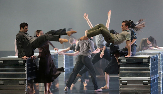 Israeli dancers perform in ‘Bodies in Urban Spaces’ by Austrian choreographer Willi Dorner as part of Israel Festival in Jerusalem.