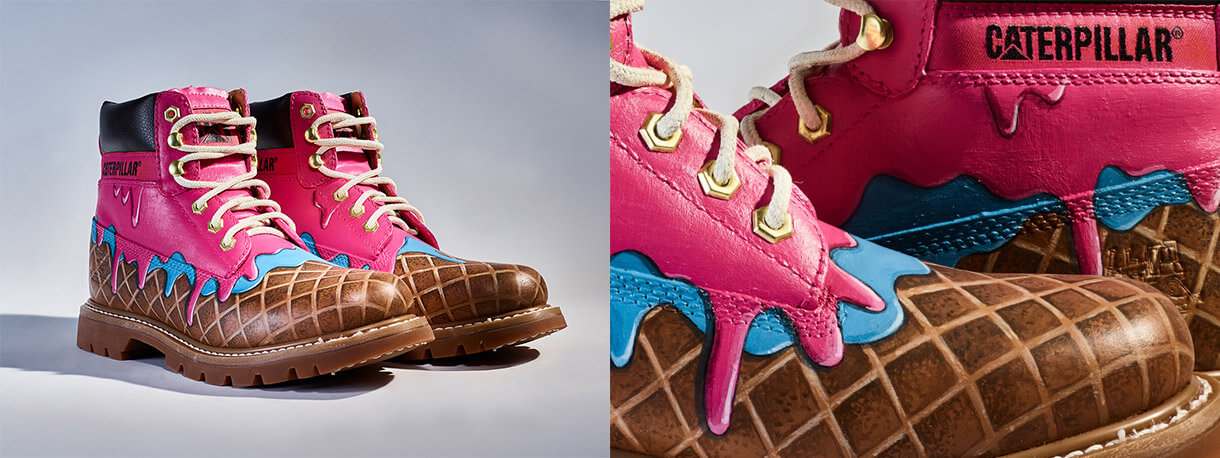 Tel Aviv illustrator Benchūk (aka Ben Amoyal) wins honors for best piece of art using a pair of CAT boots as a canvas.
