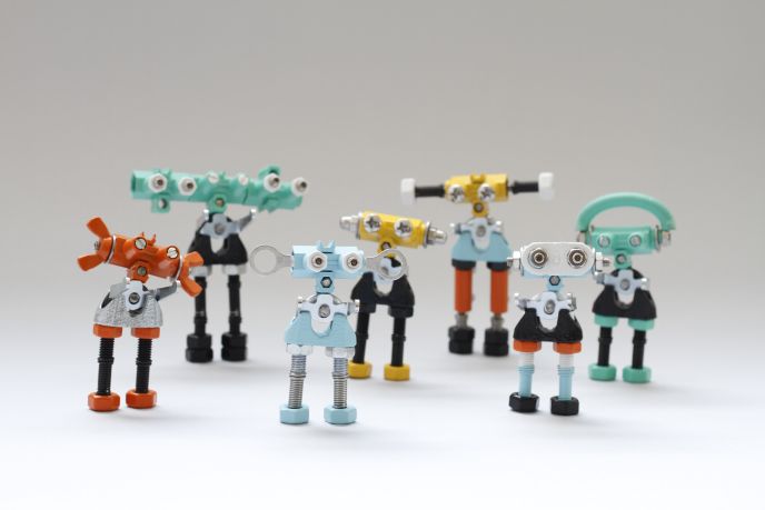 Kits to design toy robots from spare parts