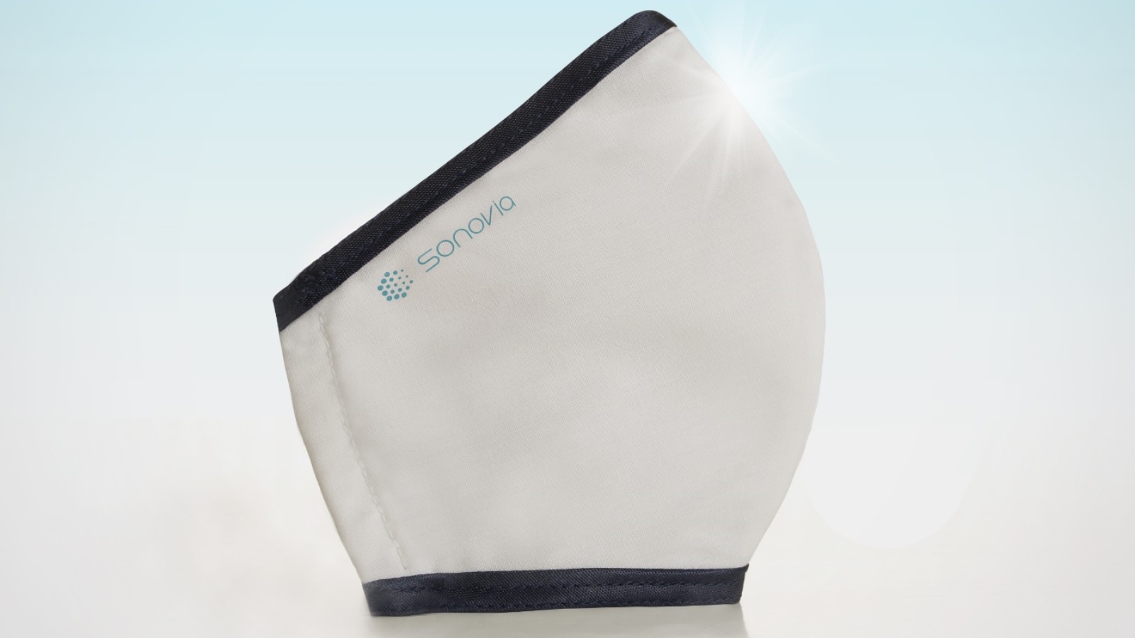 Sonovia’s reusable cotton-poly SonoMask are infused with metal-oxide nanoparticles that kill germs and last through 100 washings.