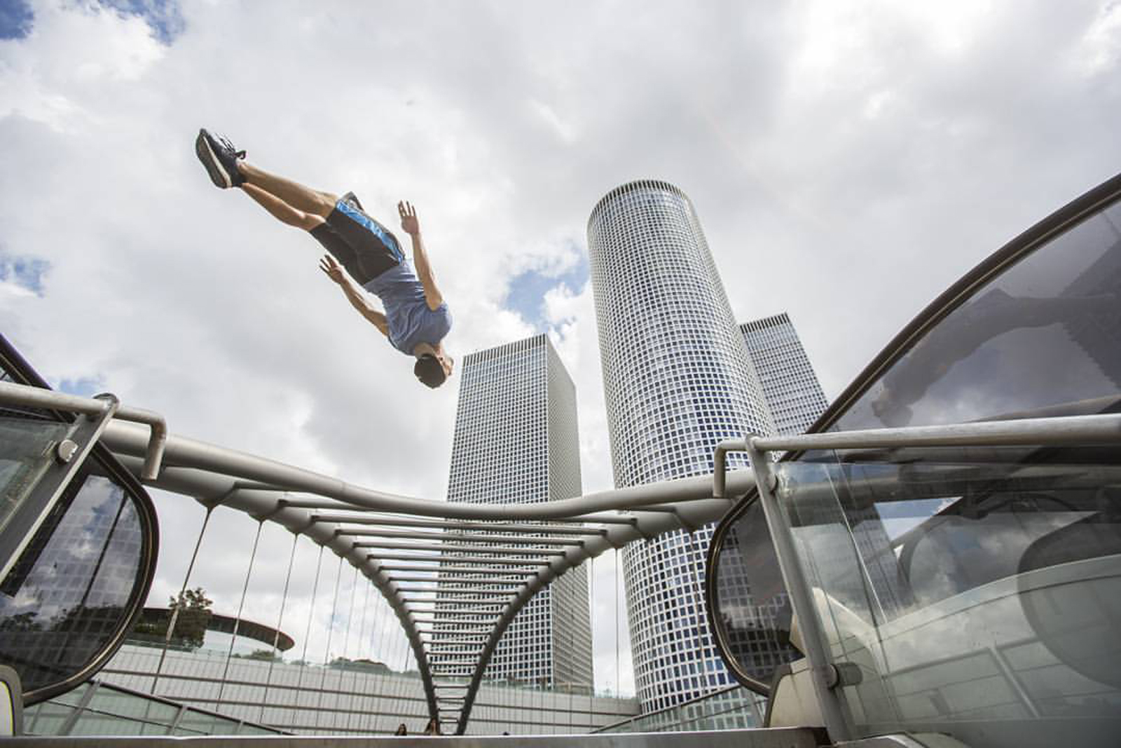 German athletes vault over a camel, do a handstand atop the Azrieli towers, flip over the Tower of David, and put Israel on the Parkour map.