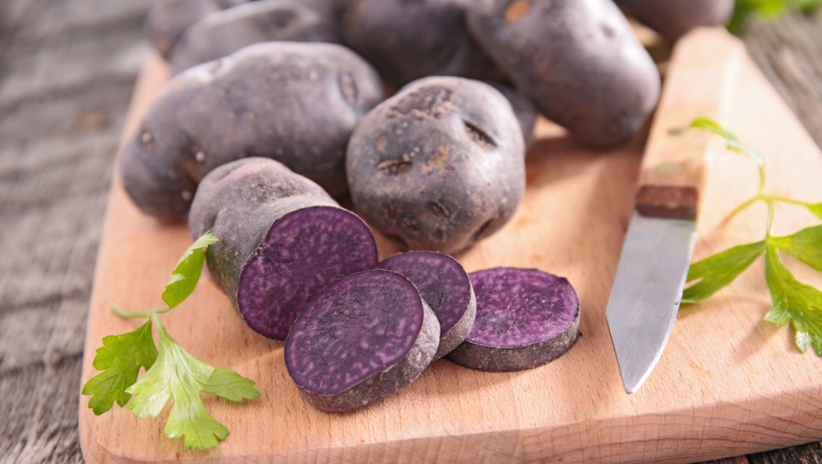 Israeli scientists synthesize healthier potatoes and tomatoes in brilliant colors. The technology can also produce unusually hued ornamental flowers.
