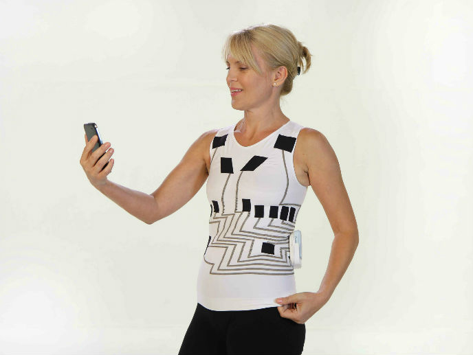 Smart-digital hWear shirt has conductive fibers woven in, performing the job of an ECG machine and transmitting vitals to your doctor’s smartphone.