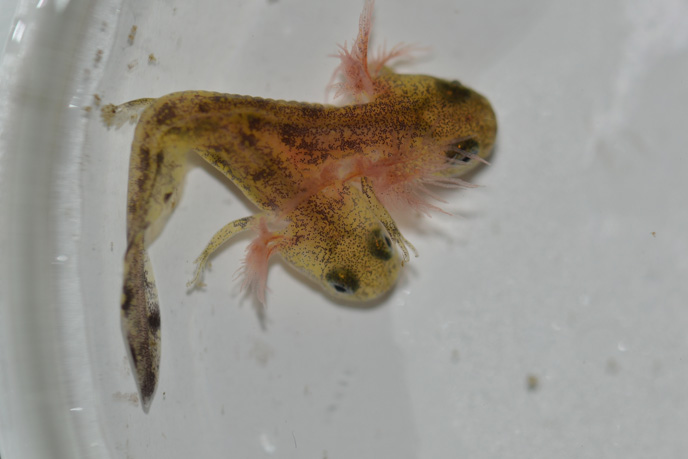 A two-headed salamander tadpole has Israeli scientists scratching their heads about the deformity. Researchers at the University of Haifa found the mutant tadpole in the Community Ecology Lab.