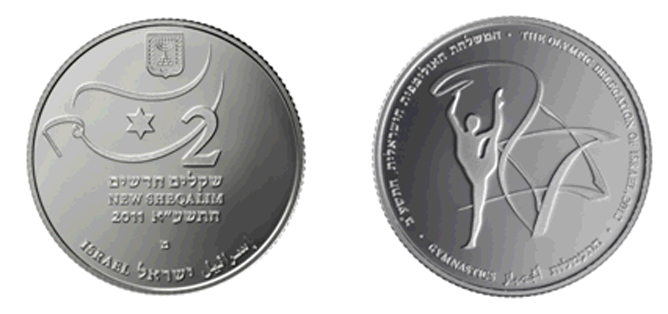 The winning coin is dedicated to gymnastics. Even though it was minted prior to the Olympic Games, one of Israel’s top achievements in London at the Olympics was by Neta Rivkin, who finished seventh overall in the individual all-around rhythmic gymnastics event.