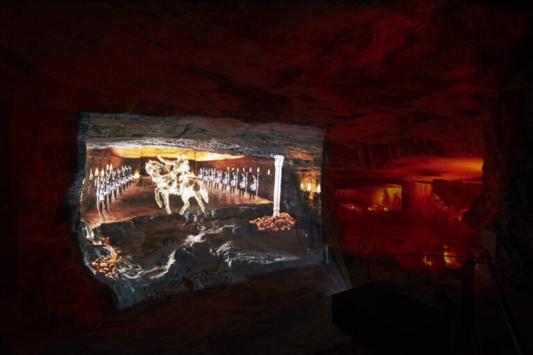 The new immersive show takes visitors on a tour through the enormous cave and brings to life the biblical tale of King Zedekiah, a Judean king from the sixth century BCE, who supposedly hid in the cave to escape Babylonian soldiers during the siege of Jerusalem.
