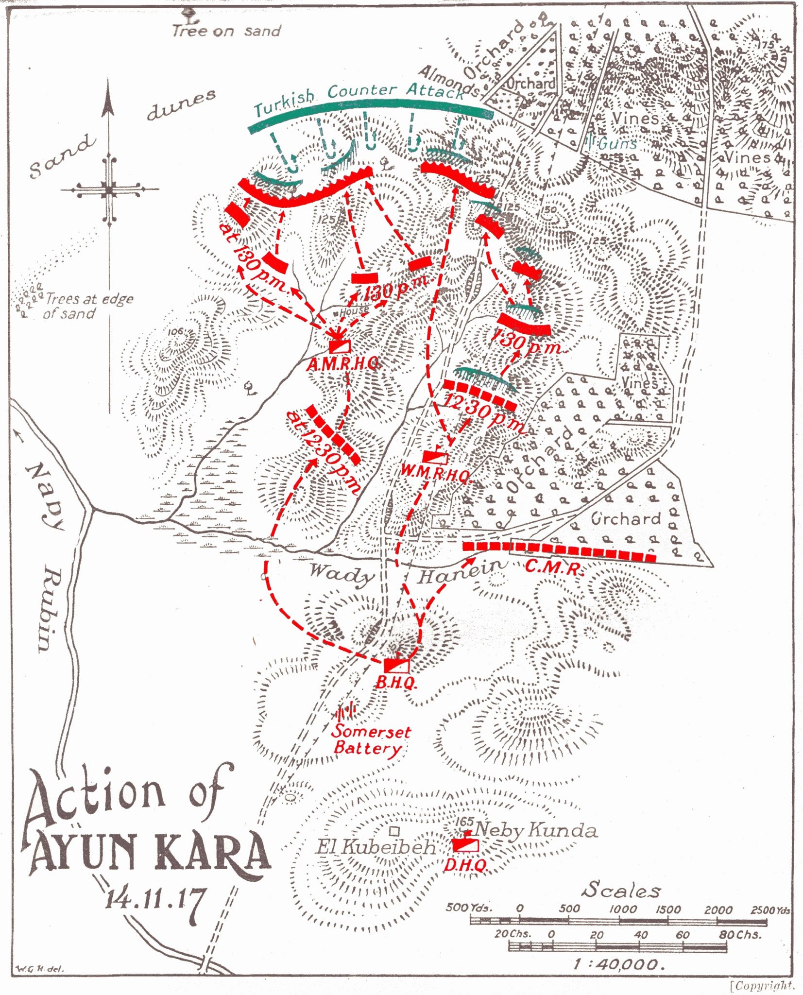 Beersheba was, however, only the beginning of a months-long offensive that ultimately resulted in the capture of Jerusalem in December 1917 by Great Britain’s Egyptian Expeditionary Force (EEF), led by General Edmund Allenby. It was after Beersheba, on November 14th, that the New Zealand Mounted Rifles Brigade (NZMR) fought against the Ottoman Turkish 3rd Infantry Division in the Battle of Ayun Kara.
