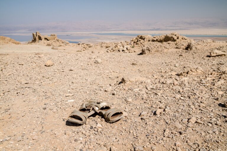 Sandals against the Dead Sea. Photo by photoshooter201 via Shutterstock.com