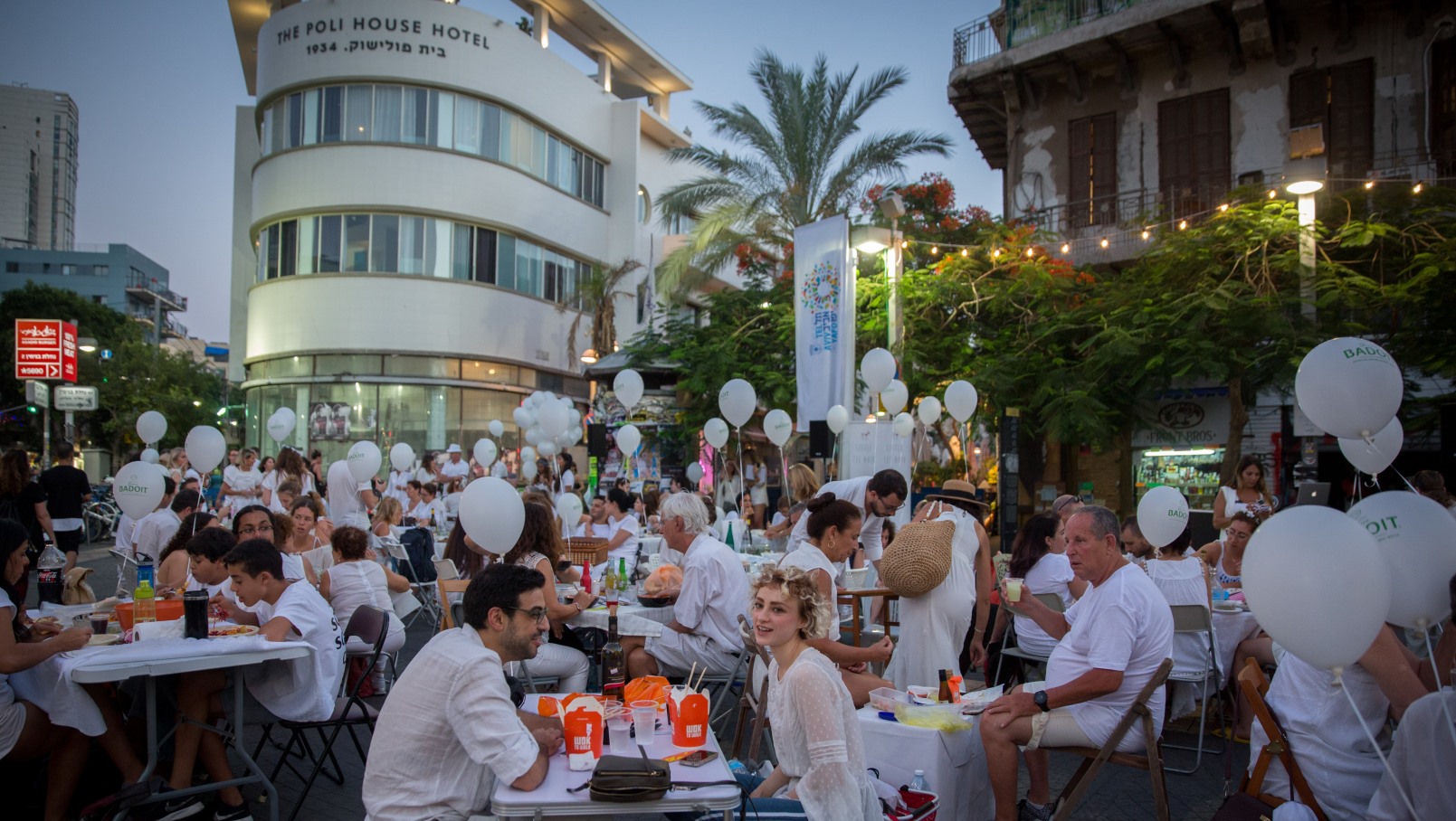 A White Dinner during the Tel Aviv White Night Festival, near the Carmel Market on June 27, 2018. Photo by Miriam Alster/FLASH90