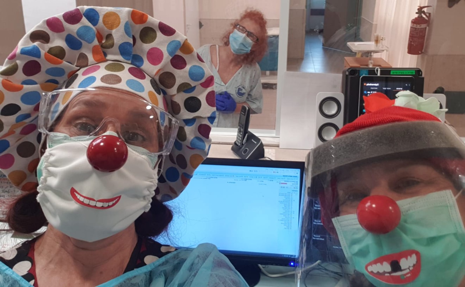 Ofir and three other Dream Doctors at Poriya began working inside corona patient rooms on October 1 at the request of the head nurse, who saw how therapeutic the window visits were.