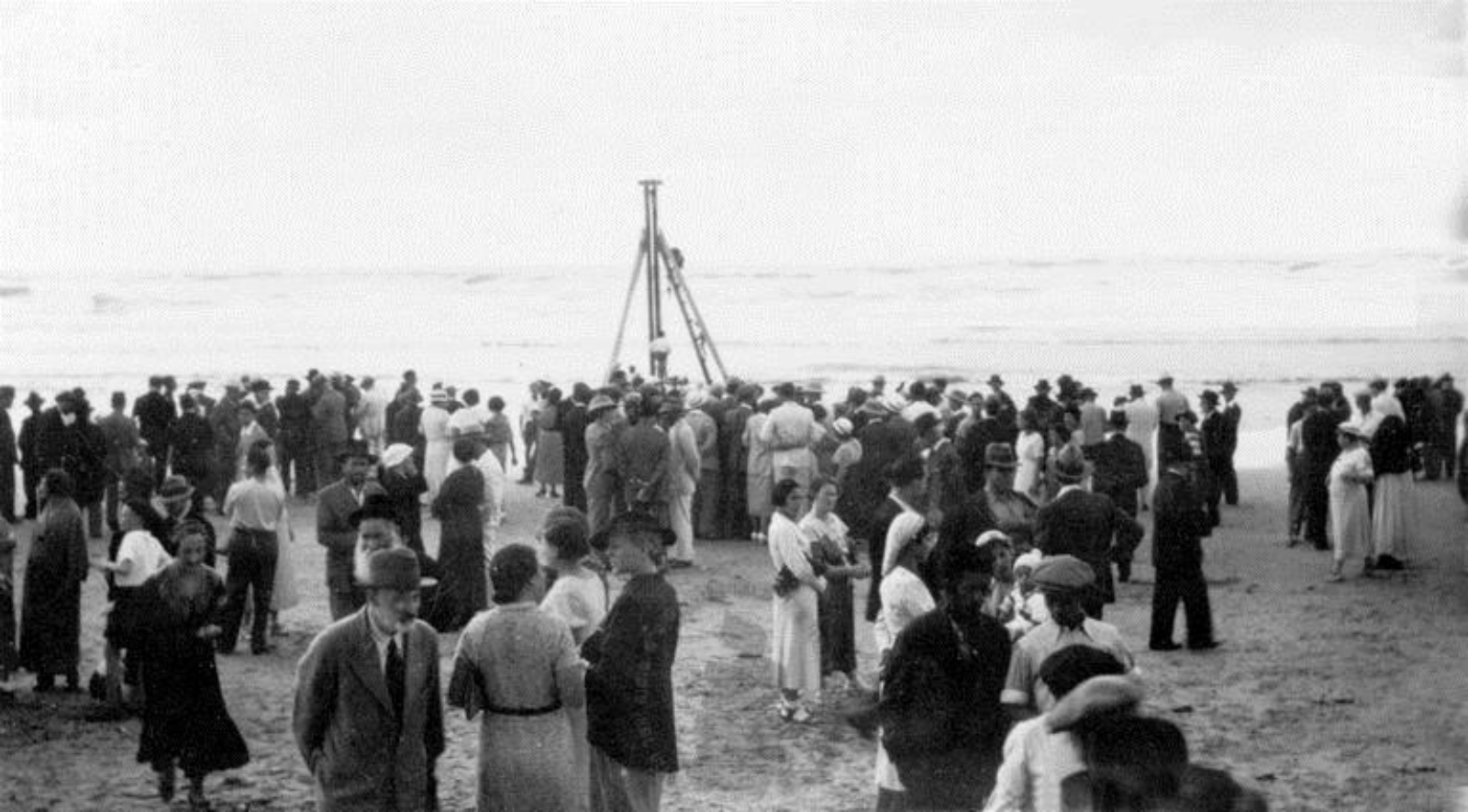 In 1931, people gathered near what would eventually become the Port of Tel Aviv, then still in the planning stages.