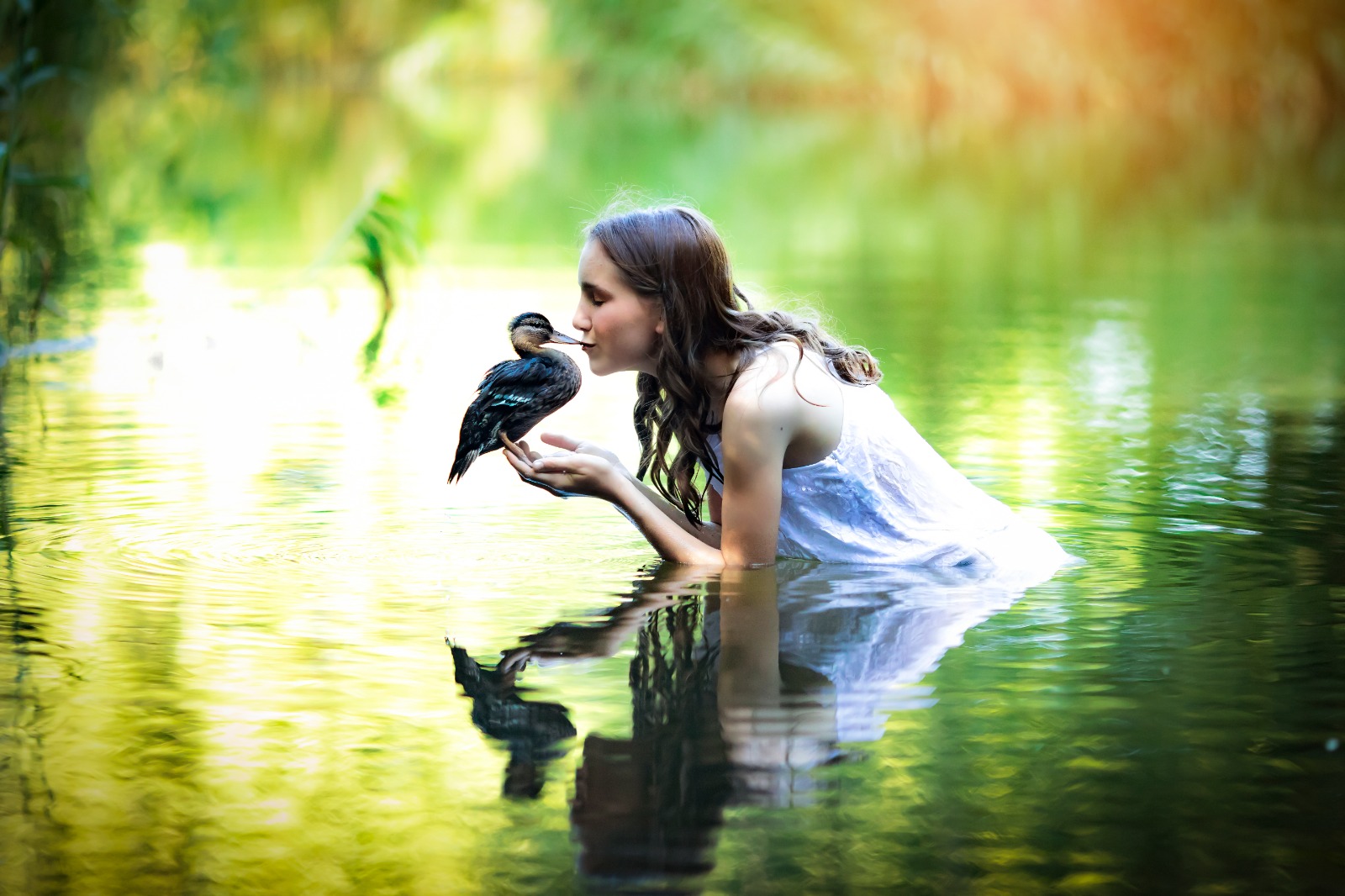 The 40-year-old mother of six-year-old twins uses the same approach when she takes pictures of children (and adults) in nature with animals – another favorite sideline.