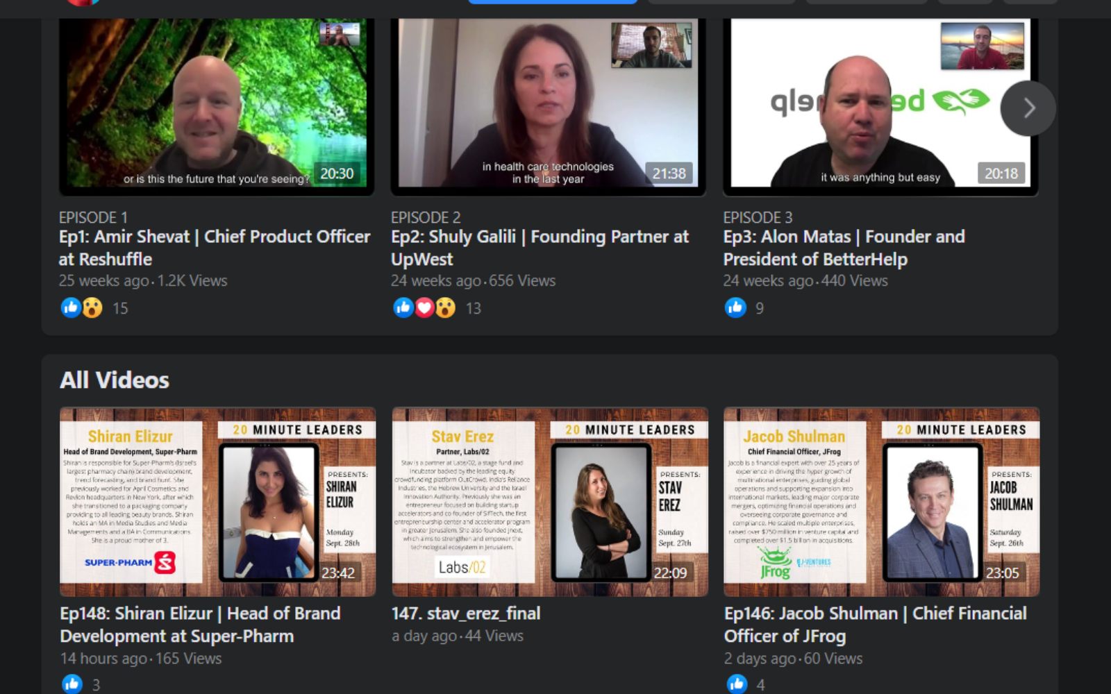 These virtual meetings resulted in 20 Minute Leaders, a series of 250 episodes available on Facebook and Spotify featuring Matias engaging in conversation with thought leaders across industries – high-tech, venture capital, politics, even Broadway – to hear about their life stories and what makes them passionate about what they do.